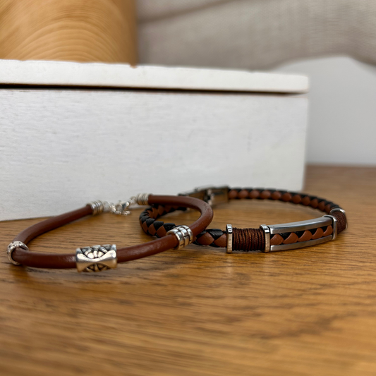Pulseras de plata para hombre y pulseras de cuero para hombre