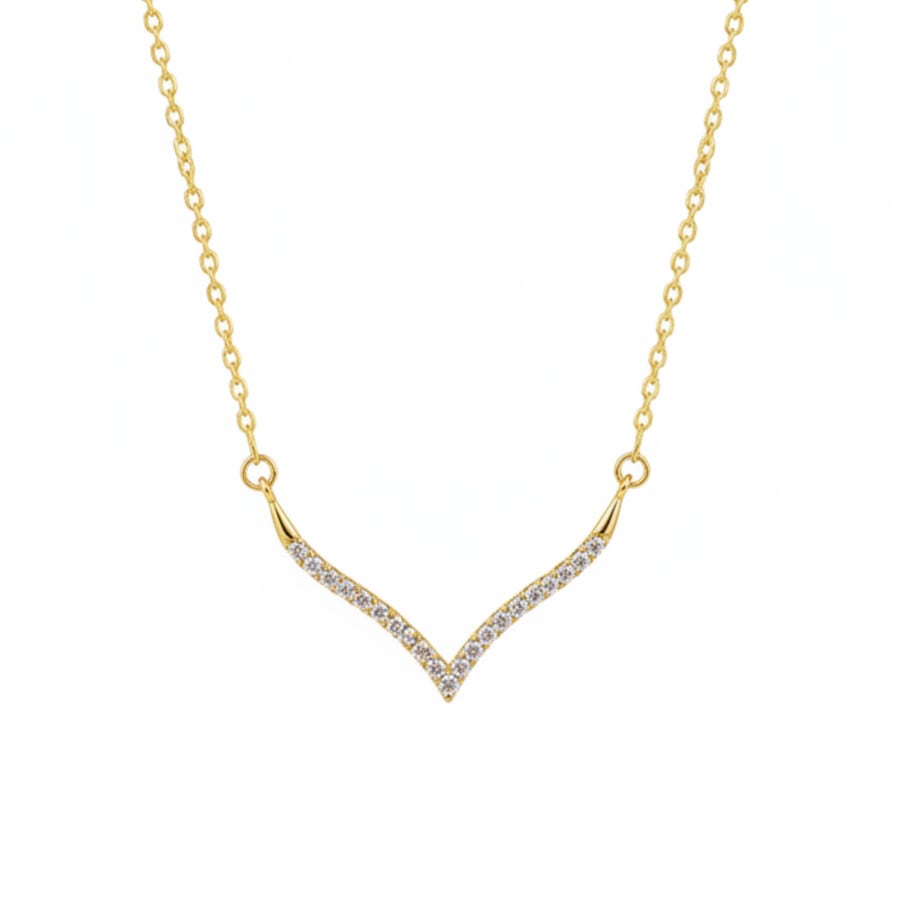 La gargantilla Emaztegaia combina elegancia y minimalismo en una joya versátil y sofisticada. Fabricada en Plata de Ley chapada en oro, su delicada barra en forma de V adornada con circonitas aporta un brillo sutil que realza el escote con estilo y feminidad.