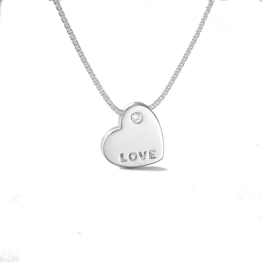 Gargantilla de Plata de Ley con elegante cadena veneciana, rematada con un colgante en forma de corazón de acabado liso. El diseño se completa con la inscripción “LOVE” grabada en relieve y una circonita brillante que aporta un toque sutil de luz y sofisticación.