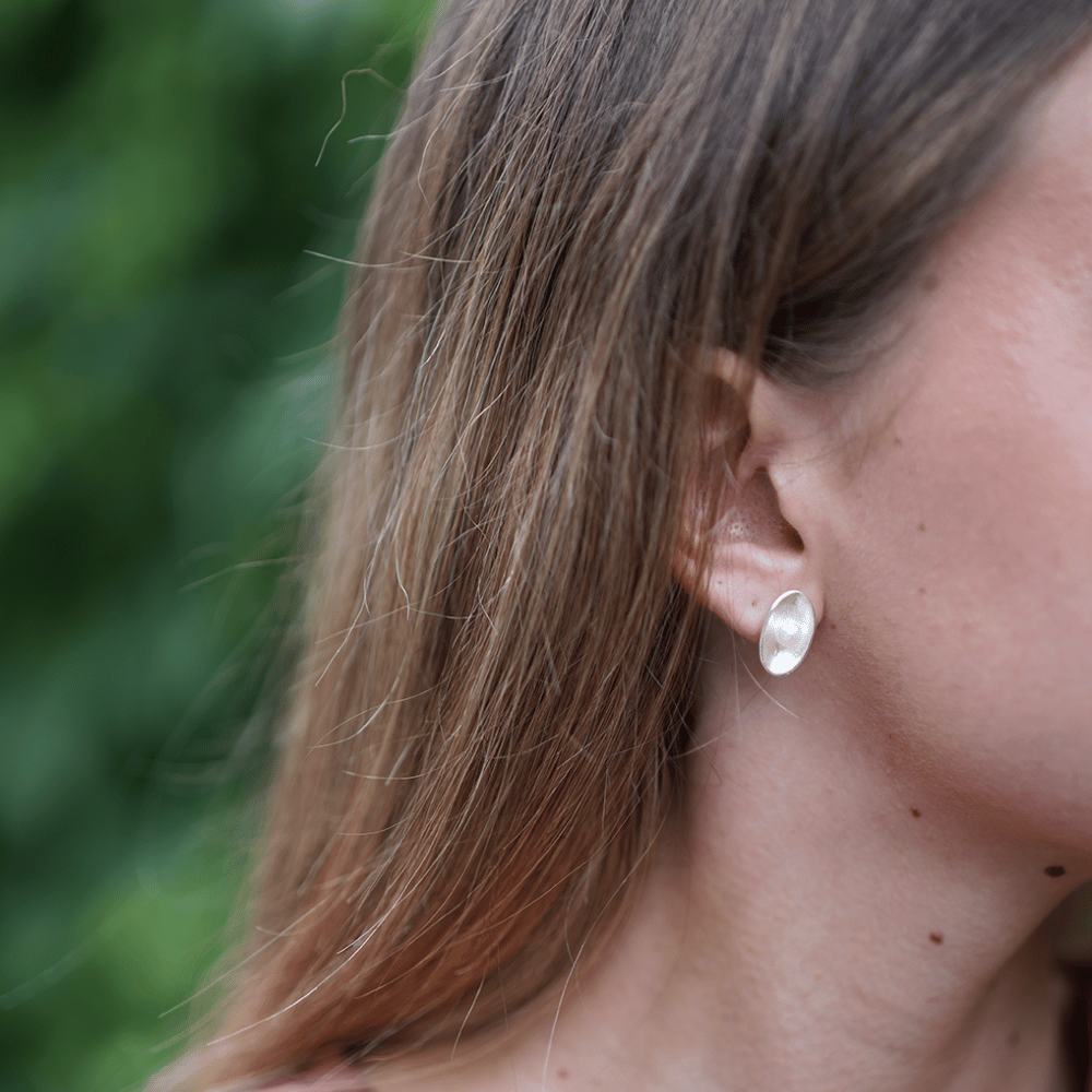 El pendiente Dham deslumbra con su diseño ovalado de Plata de Ley 925, donde el acabado mate contrasta con la suavidad luminosa de una perla cultivada central. Una combinación sofisticada que aporta profundidad visual y una elegancia contemporánea con alma clásica.