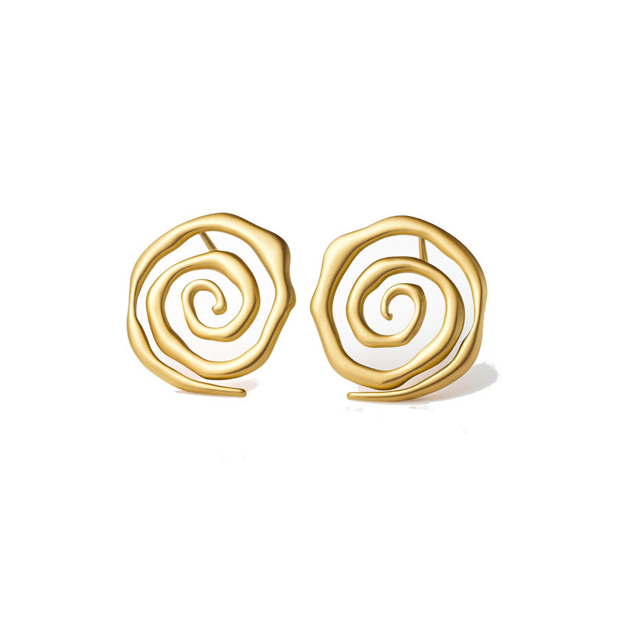 Pendientes elaborados en acero chapado en oro con un original diseño de espiral irregular, que aporta un estilo artístico y lleno de movimiento. Sus formas orgánicas crean una pieza dinámica y muy diferente, ideal para quienes buscan salir de lo convencional.